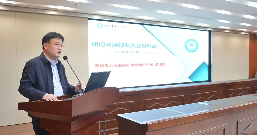 2月25日,我院成功举办医院第八期科研创新能力培训班。副院长薛增明以《如何利用现有资源做科研—临床数据库的建立和科研产出》为课题,从为什么做科研、建立具有专科特色的数据库、CRF表的数据收集、数据库产出课题及文章、心血管病研究所及冠心病精准治疗重点实验室及经验总结六个方面介绍了如何利用现有资源进行科研以及做科研的体会和相关经验。