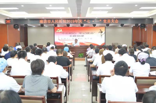 然后他从四个方面进行了阐述,一要准确理解和把握“不忘初心、牢记使命”的科学内涵,二要充分认识开展“不忘初心、牢记使命”主题教育的重大意义,切实把思想和行动统一到党的决策上来,三要祛除顽疾激荡新风,进一步增强工作的主动性和积极性,四要突出解决问题的针对性。他强调全体党员要迅速行动起来,充分发挥先锋模范带头作用,积极投身于“不忘初心、牢记使命”主题教育活动中,坚决防止形式主义;加强宣传引导,强化舆论监督,真抓实干、转变作风,提高本领、解决问题,带领全院广大职工再兴观念创新之风、再鼓苦干实干之气、再谋科学发展之策,再兴全面落实之举,坚定信念、不懈努力,推动医院高质量发展,以实际行动迎接新中国成立70周年!